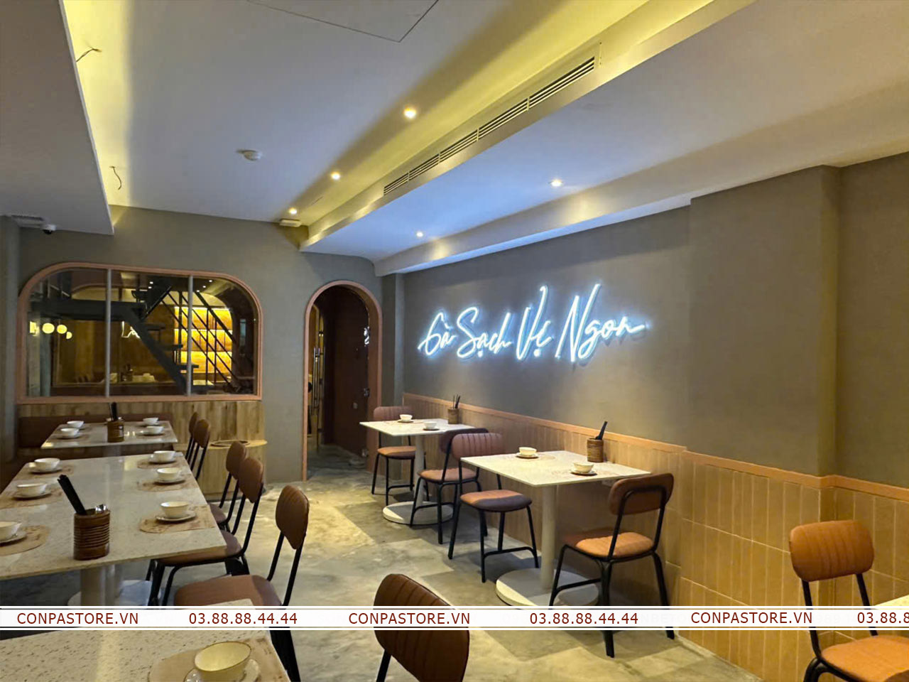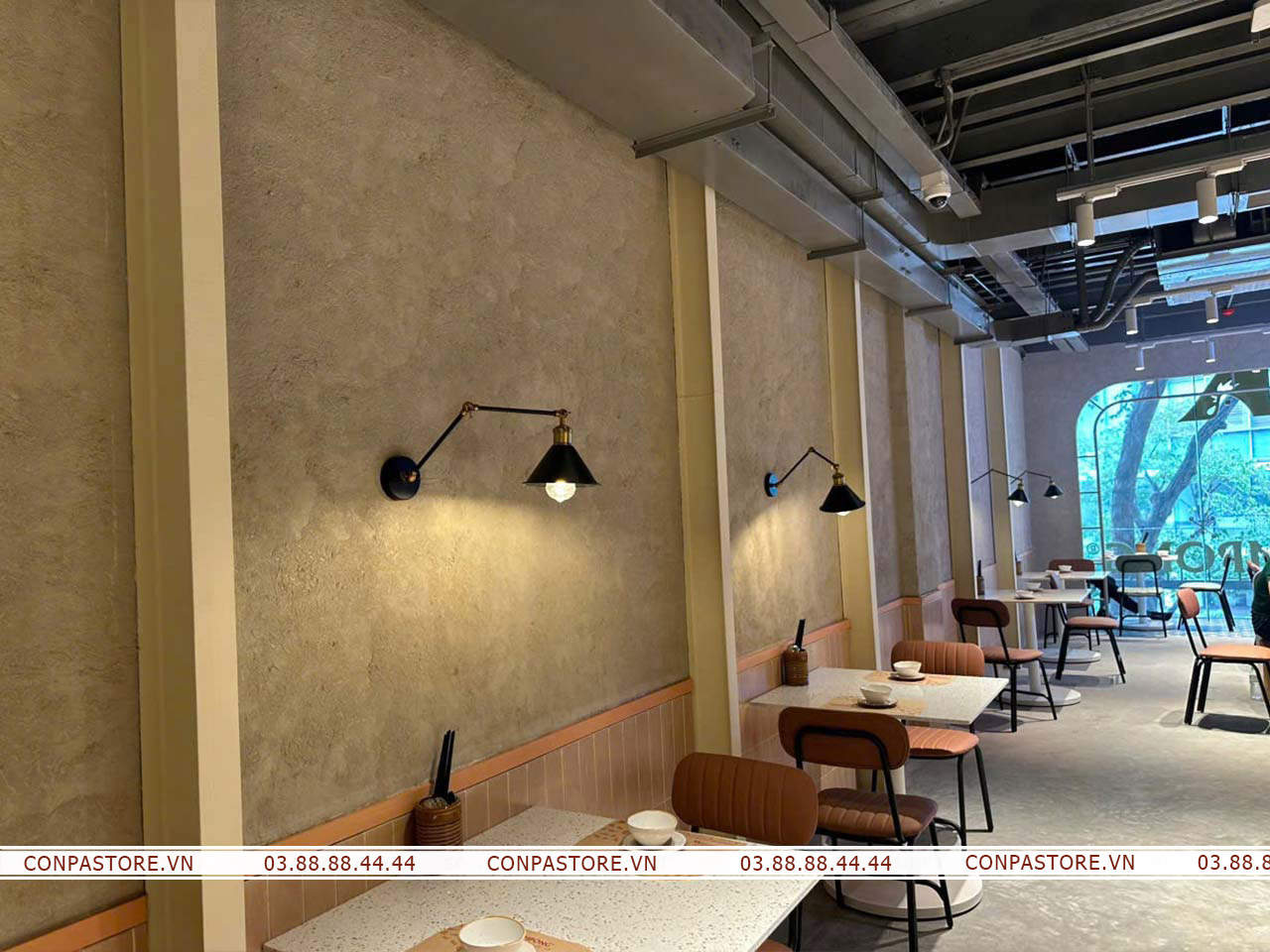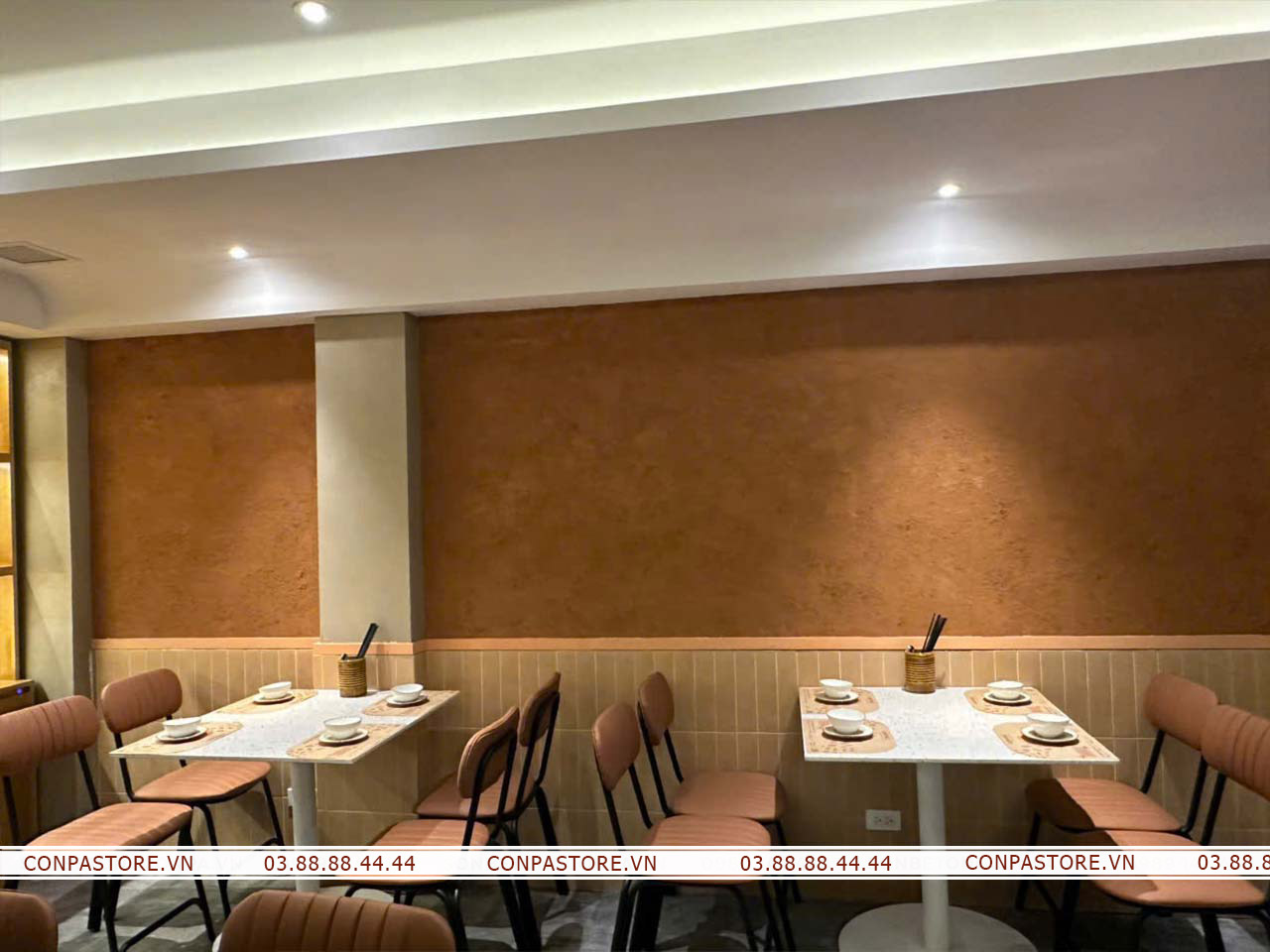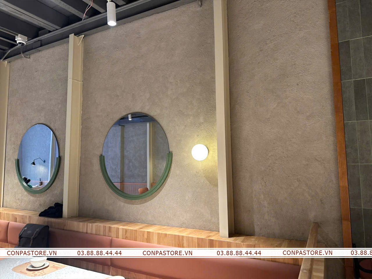 Sự phối hợp độc đáo của dòng sơn rơm đất và hiệu ứng bê tông đã đem lại một không gian cổ điển nhưng không kém phần hiện đại. Gợi mở không gian đồng quê bởi những bề mặt tường rơm đất, đem đến những trải nghiệm đáng nhớ cho thực khách.