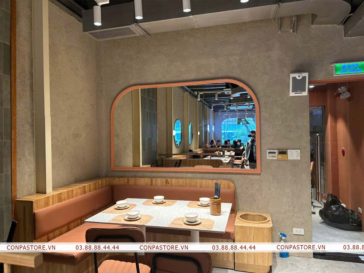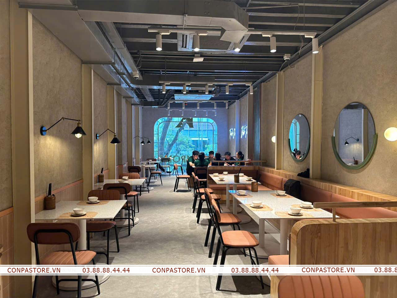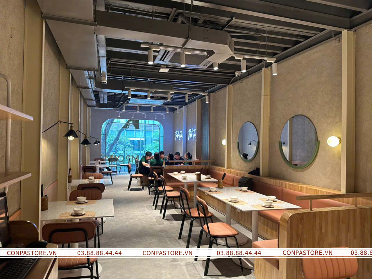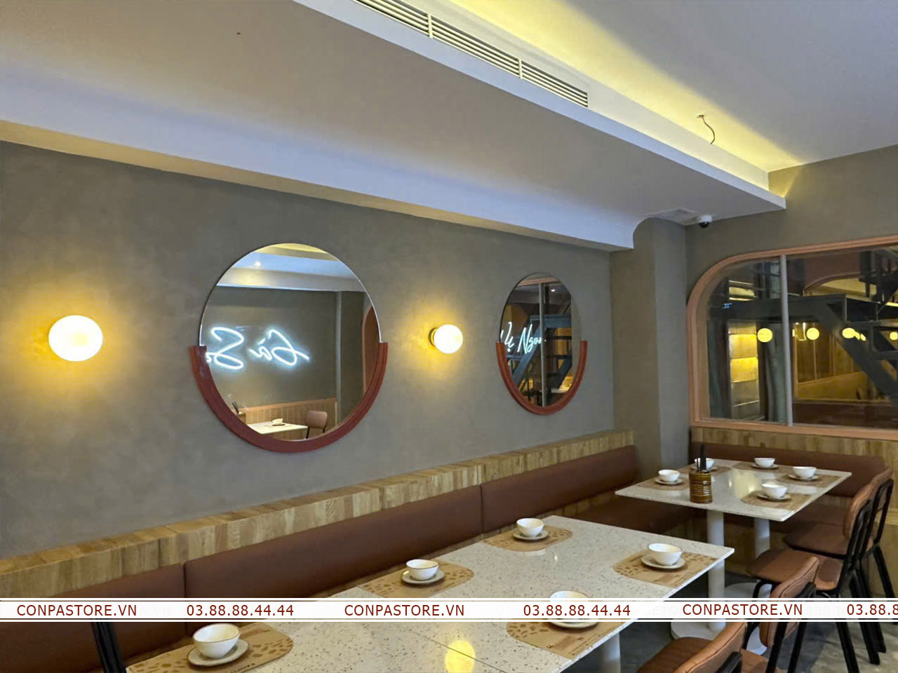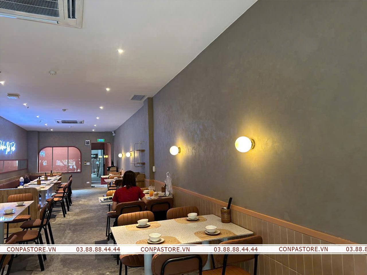 Sự phối hợp độc đáo của dòng sơn rơm đất và hiệu ứng bê tông đã đem lại một không gian cổ điển nhưng không kém phần hiện đại. Gợi mở không gian đồng quê bởi những bề mặt tường rơm đất, đem đến những trải nghiệm đáng nhớ cho thực khách.