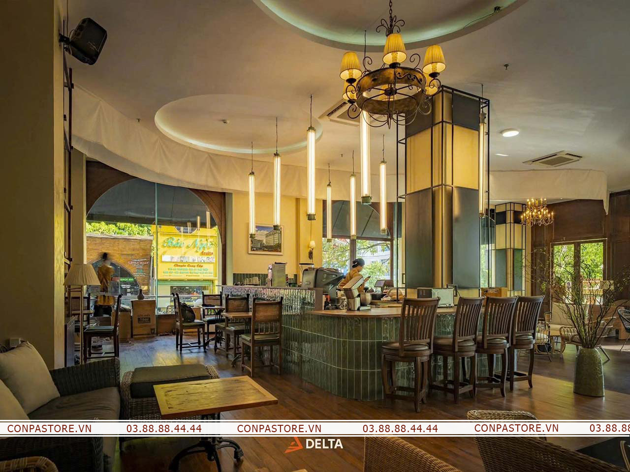 Một quán cafe có kiến trúc sang trọng, lấy nguồn cảm hứng bởi các công trình châu âu, cổ điển.