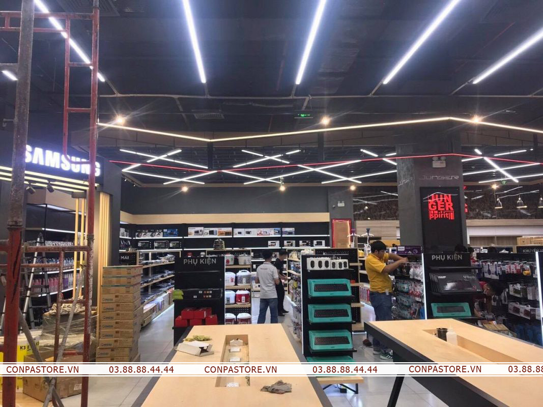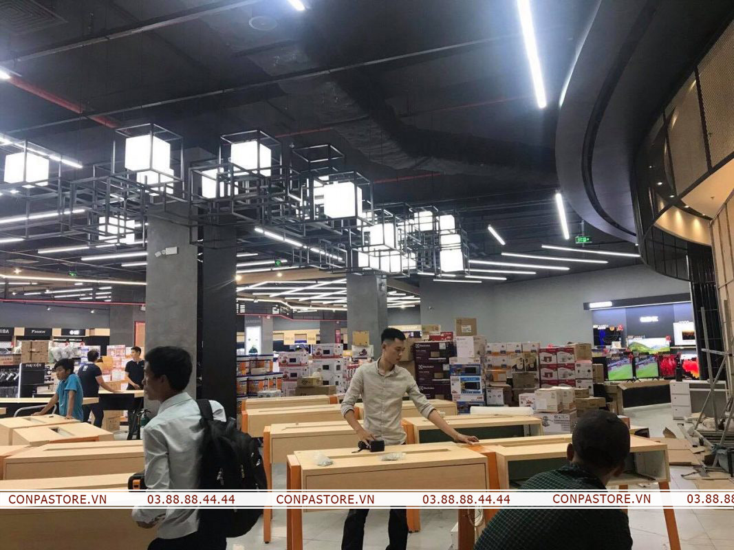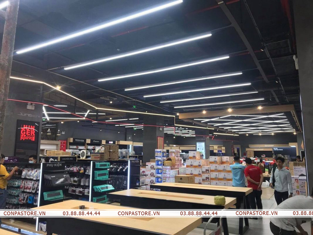 Conpa cùng Nguyễn Kim tạo nên không gian mua sắm sang trọng, hiện đại nhưng gần gũi với khách hàng. Với tone màu mở rộng không gian và sạch sẽ, khách hàng sẽ thoải mái mua sắm và trải nghiệm tại Nguyễn Kim.