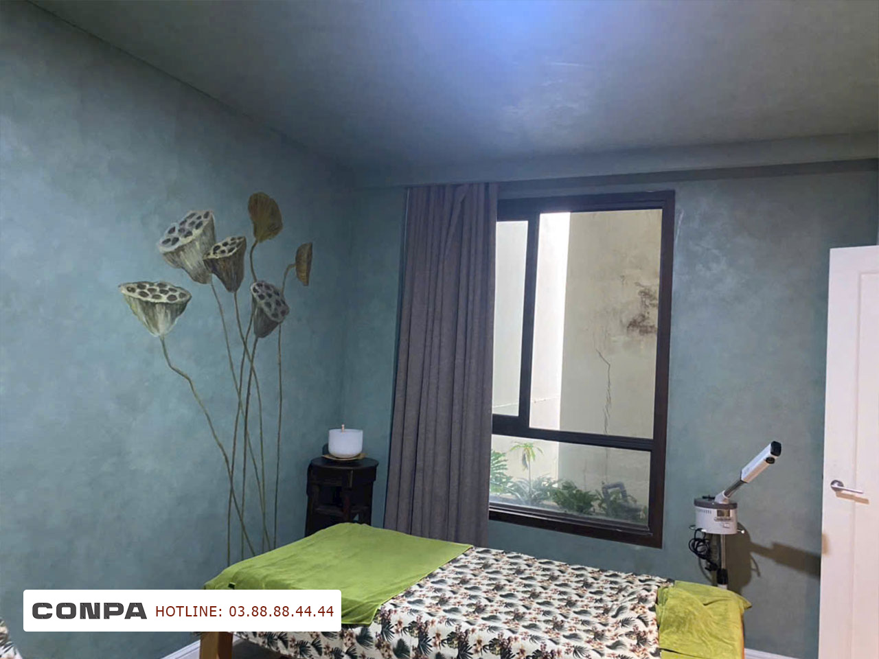 Một công trình FULL sơn hiệu ứng độc đáo và ấn tượng, tọa lạc tại quận 10. Q – SPA đem tới những không gian trải nghiệm mới, ứng dụng sơn hiệu ứng vào trang trí không gian và thiết kế nội thất, đem lại cảm giác thư giãn, mới lạ và gần gũi với thiên nhiên.